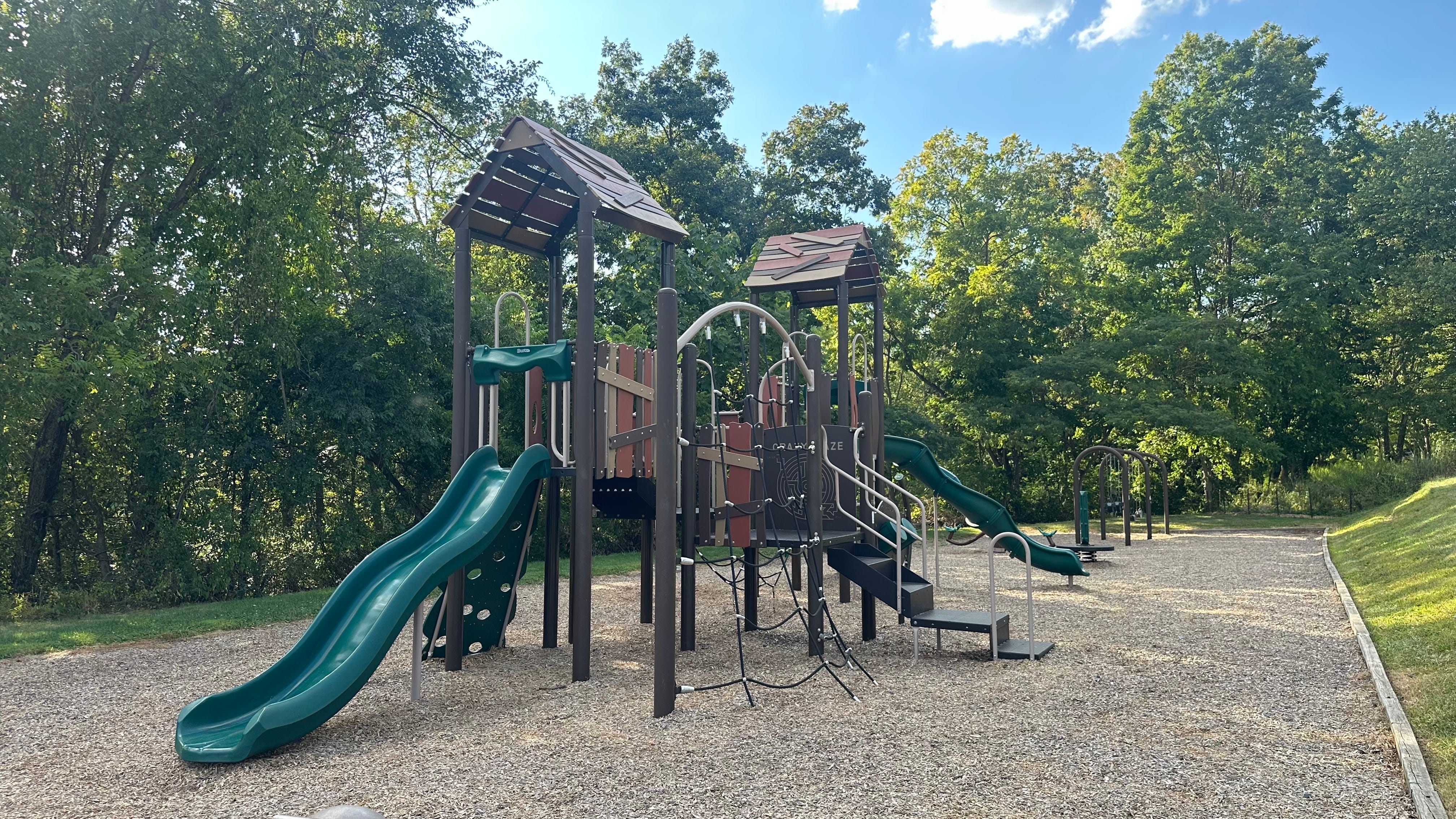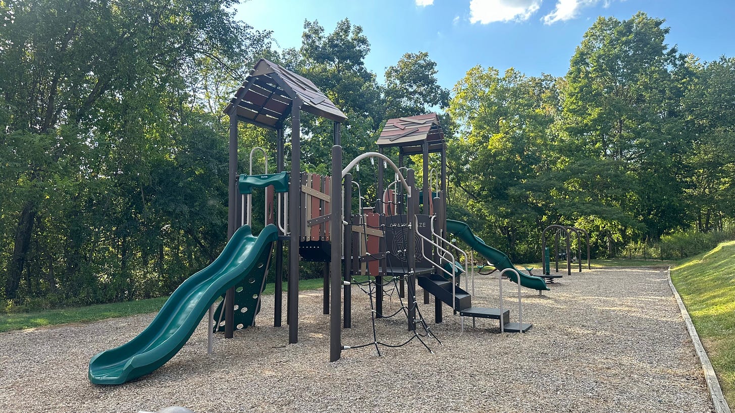 No basketball or tennis courts here, just the play area, pavilion, walking path, and trail